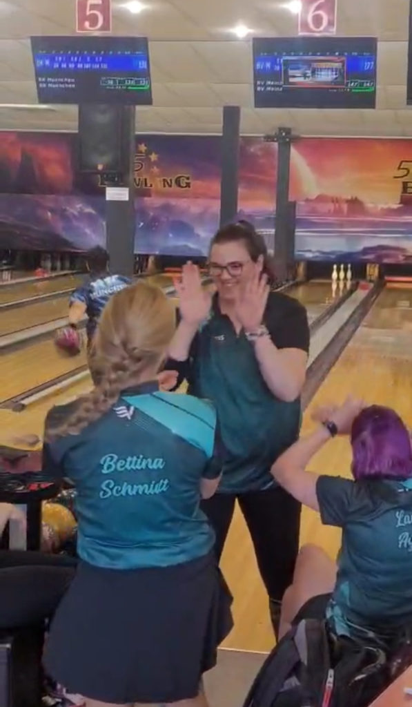 Das Sahnehäubchen folgte im letzten Spiel: Im Baker-System zeigten unsere Damen absolute Weltklasse und spielten über 4 Spiele einen überragenden Schnitt von 209 Pins. Gegen den BK München wurden so weitere 6 Spielpunkte erkämpft – ein perfekter Abschluss!
